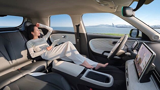 Kokpit pôsobí moderne a prémiovo — prístrojová doska aj dvierka majú prešívané čalúnenie a mäkčené materiály, čo vytvára pocit vyššej kvality než sa obvykle očakáva v tejto triede. Dominantou je veľký 12,8‑palcový centrálny dotykový displej, ktorý slúži na ovládanie multimédií, navigácie a ďalších funkcií, doplnený menším 5‑palcovým digitálnym displejom priamo pred vodičom. Komfort zvyšujú funkcie ako ventilované sedadlo vodiča, bezdrôtové nabíjanie smartfónu, ambientné osvetlenie s možnosťou výberu z až 32 farieb a výber z niekoľkých farebných kombinácií interiéru. Priestorovo interiér využíva rázvor kolies 2,66 m veľmi dobre — cestujúci vzadu majú slušný priestor na nohy, a predné sedadlá sú navrhnuté aj tak, aby sa dali sklopiť, čím sa zvýši variabilita a ubytovanie batožiny alebo iných predmetov. Praktické riešenia sú premyslené – popri „plávajúcej“ stredovej konzole je k dispozícii šuplíkový úložný priestor pre spolujazdca , veľké zrkadlá na slnečných clonách, a kufor s kapacitou 326 litrov, ktorý sa dá zväčšiť sklopením zadných operadiel.