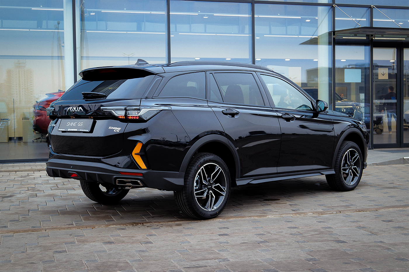Exteriér Dongfeng Shine GS upúta na prvý pohľad svojím moderným a dynamickým dizajnom, ktorý spája elegantné línie s výraznejšou a sebavedomou siluetou karosérie. Jeho aerodynamicky tvarovaná maska a plynulé bočné línie pôsobia progresívne a zdôrazňujú športový charakter vozidla. Výrazný svetelný podpis s LED denným svietením a atraktívne zadné LED svetlá dodávajú autu moderný a technologický vzhľad aj pri slabšom svetle. Model stojí na 17-palcových diskoch kolies, ktoré podporujú jeho stabilný postoj na ceste a zároveň dotvárajú celkový elegantný profil. Vysoká svetlá výška a robustnejšie tvary karosérie zároveň naznačujú praktickosť a univerzálnosť, vďaka čomu Shine GS pôsobí sebavedomo v meste aj na otvorenej ceste.