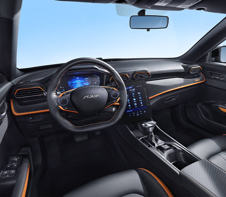 Interiér automobilu Dongfeng Shine GS je moderný a technologicky orientovaný priestor, ktorý kombinuje komfort s praktickými riešeniami pre každodenné používanie. Dominantou palubnej dosky je veľký 13-palcový dotykový displej infotainmentu a 7-palcový digitálny prístrojový štít, ktoré poskytujú prehľadné a intuitívne ovládanie aj informácie pre vodiča. Kabína je priestranná a svetlá, čiastočne vďaka panoramatickej streche, ktorá vpúšťa do interiéru viac prirodzeného svetla. Sedadlá sú ergonomicky tvarované a poskytujú pohodlie aj na dlhších trasách, pričom výbava môže zahŕňať aj vyhrievané prvky a automatickú klimatizáciu. Celkový dizajn pôsobí elegantne a funkčne, s dôrazom na moderné materiály a komfort pre posádku.