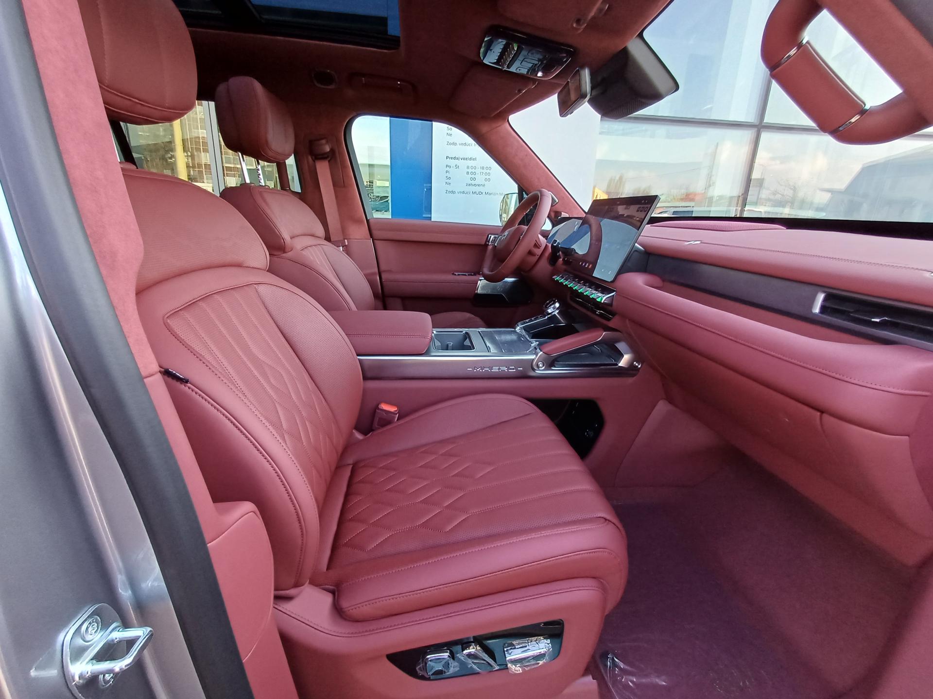 Rozšírená záruka 2+3 roky alebo 150 000 km na vozidlo , Rozšírená záruka 2+6 rokov alebo 160 000 km na batériu , Motor- Benzínový preplňovaný agregát 1.5 L , Kapacita trakčnej batérie (kWh) 31,73 , Typ trakčnej batérie - CATL Lítium-železo-fosfát , Max. krútiaci moment elektromotorov - predný + zadný 760 Nm , Inteligentný pohon 4 kolies all-wheel drive , Režim pohonu - FUEL / EV / HYBRID , Natáčanie zadnej nápravy , Režim Crab walk , Odpojiteľný zadný diferenciál , Uzávierka stredového diferenciálu , Transparentná karoséria , Predné a zadné ťažné oko , Ochranné kryty komponentov podvozku , Pneumatiky - 275/60 R20 , Predné sedadlá - Automaticky nastaviteľná výška svetlometov , PM 2.5 Filter s aktívnym uhlím , Vodič 8-smerové, spolujazdec 6-smerové elektricky nastaviteľné predné sedadlá, nastaviteľné hlavové opierky, nastaviteľná bedrová opierka, funkcia vyhrievania, funkcia pamäte polohy , Zadné sedadlá - Sklápateľné v pomere 40/60, nastaviteľná poloha operadiel, 2x ISOFIX, funkcia vyhrievania , Masážna funkcia sedadla vodiča a spolujazdca , Ventilácia sedadla vodiča a spolujazdca , Displej prístrojového panelu 10,25" , Centrálny displej - 15,6" Apple Carplay, Audio 16+1 Dynaudio, hlasové ovládanie, Wi-Fi, Bluetooth , Ovládací displej pre zadný rad sedadiel , Integrovaná chladnička v centrálnej konzole - (-6 C až + 50 C) , Funkcia V2L , Cenníková cena modelu s DPH 74 900,00 EUR , Príplatková výbava: Strieborná farba - 2 449,00 EUR , Tmavočervená farba - interiér 2 049,00 EUR.