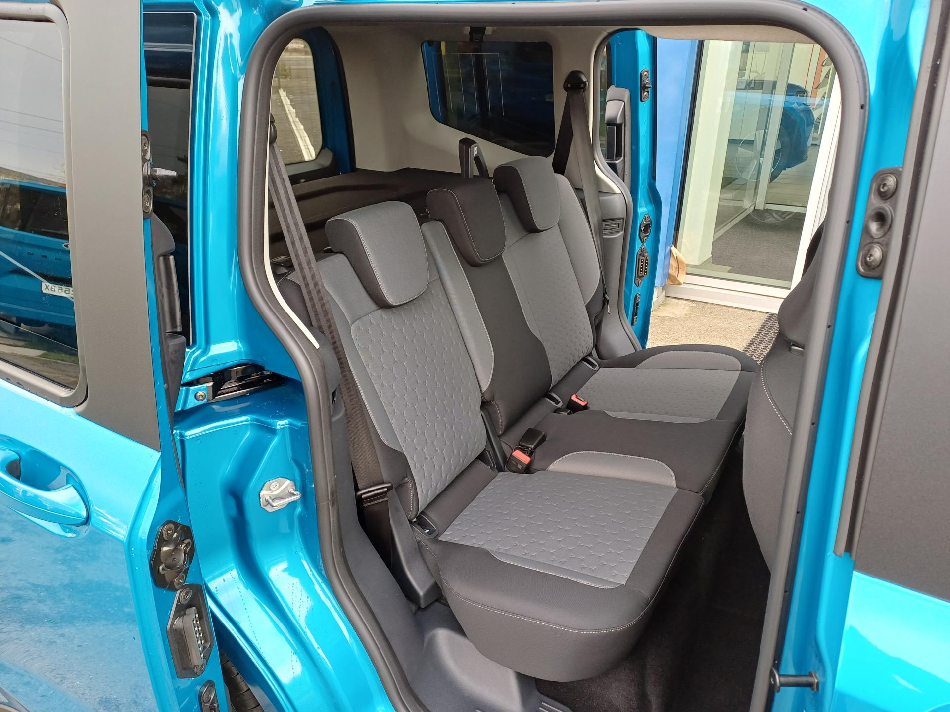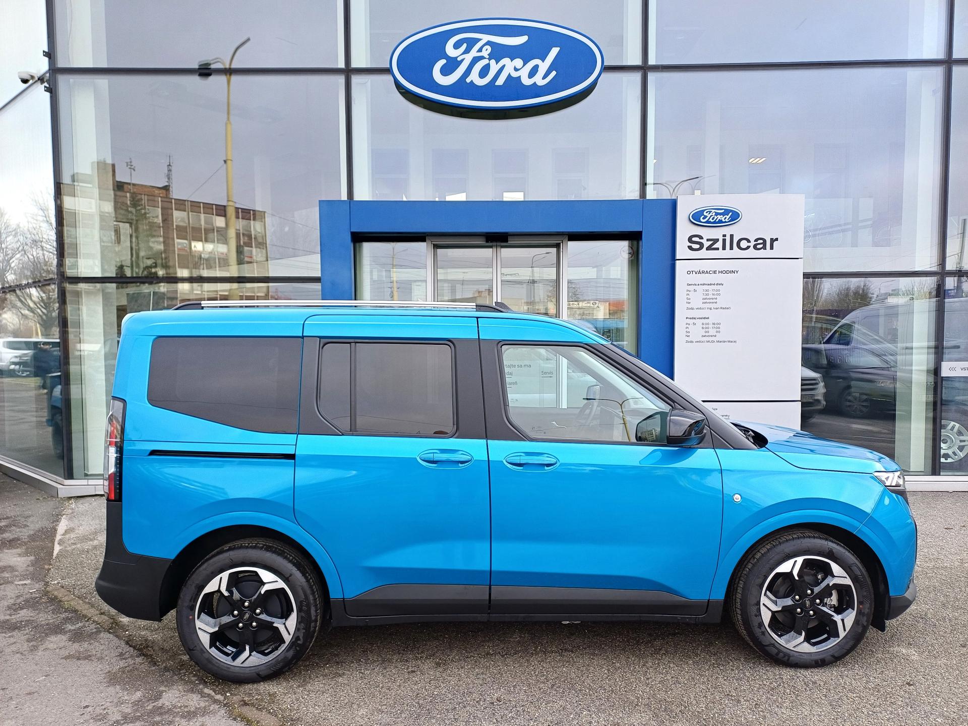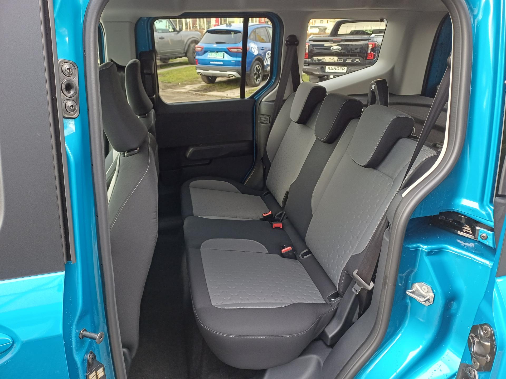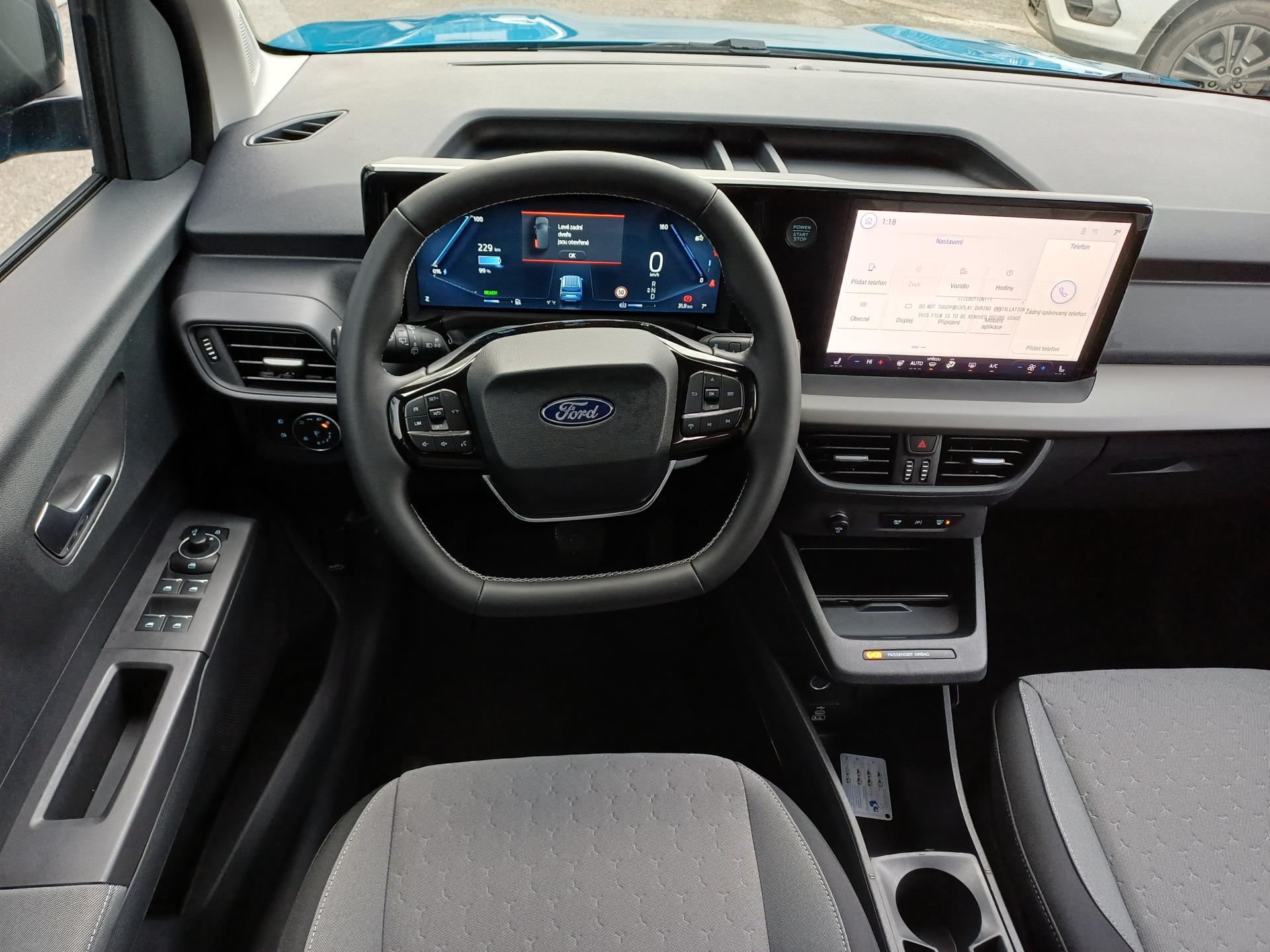 Asistenčná služba Ford Euroservice 2 roky zdarma po celej Európe , Originálna továrenská záruka na vysokonapäťový akumulátor 8 rokov / 160 000 km , Predĺžená továrenská záruka Ford Protect 5 rokov / 150 000 km , Sada Winter- Vyhrievané čelné sklo- Vyhrievaný volant Sensico (umelá koža)- Vyhrievané predné sedadlá- Automaticky stmievateľné vnútorné spätné zrkadlo , 17" disky kolies z ľahkej zliatiny leštené Silver & Black, pneumatiky 215/55 , 2x USB C v druhom rade sedadiel , Akumulátor AGM H3, 35Ah , Bezdrôtové pripojenie pre Apple CarPlay a Android Auto, Bluetooth, USB A + USB C, ovládanie na volante , Bezkľúčové centrálne zamykanie KeyFree + štartovanie tlačidlom FordPower (2 x pasívny kľúč s DO) , Bezpečnostné 3-bodové pásy na všetkých sedadlách, signalizácia nezapnutého bezpečnostného pásu pre všetky sedadlá , Bočné posuvné dvere na pravej aj ľavej strane s lakovanou krytkou koľajničky , Brake Boost - elektrický posilňovač bŕzd , Brzdy vpredu kotúčové / vzadu bubnové , Digitálny prístrojový panel 12" , EATC - automatická klimatizácia + peľový filter , Elektricky ovládané bočné okná v druhom rade , Elektronická parkovacia brzda s funkciou AUTO HOLD , Elektronický stabilizačný systém ESP - vrátane ABS, asistenta rozjazdu do kopca, multikolíznej brzdy a ďalších systémov na podporu stability, trakcie a brzdenia (EBA, EBD, TCS, ROM, LAC, TVC) , EPAS - elektrický posilňovač riadenia s variabilným účinkom , Halogénové predné svetlomety , ICE 2 - systém SYNC 4 + rádio AM/FM/DAB, 12" farebný dotykový displej, 6 reproduktorov , Integrované tretie brzdové svetlo v zadných dverách nákladového priestoru , Kľučky dverí vo farbe karosérie , Kobercová podlaha v celom vozidle , Kryt batožinového priestoru , LED denné svietenie + LED lišta medzi prednými svetlometmi , LED zadné svetlá , Nabíjací kábel 5m (3-fázový, 32A, Typ 2) , Odkladací priečinok v batožinovom priestore , Odkladacia polica nad čelným sklom po celej šírke kabíny , Predný plastový nárazník - lakovaný vo farbe karosérie , Predpríprava pre uchytenie detskej sedačky ISOFIX - krajné zadné sedadlá, detské poistky zámku , PTC - doplnkové elektrické kúrenie , Rozmrazovanie zadných presklených dverí + zadný stierač s ostrekovačom , Sada Assist: Pre-Collision Assist s rozpoznávaním chodcov a cyklistov, inteligentný tempomat, asistent navrátenia do jazdného pruhu LKA, rozpoznávanie dopravných značiek, kontrola bdelosti vodiča , Rezerva pre núdzový dojazd oceľová 16" + náradie , Sedadlá v druhom rade delené v pomere 60:40 - s funkciou preklápania , Sedadlá vpredu - sedadlo vodiča nastaviteľné v 6 smeroch a sedadlo spolujazdca nastaviteľné v 4 smeroch, lakťová a bedrová opierka pre sedadlo vodiča , Slnečná clona spolujazdca so zrkadlom , Tmavé sklá okien (zadné okná od B-stĺpika) , Úchytné oká v batožinovom priestore , Úložný priestor pod kapotou 44l (frunk) , Volant Sensico - umelá koža, (Sada Winter) , Výškovo a pozdĺžne nastaviteľný volant , Zadné výklopné dvere s presklením , Zadný plastový nárazník - nelakovaný , Zásuvka 12V v kabíne vodiča , Metalický lak - Digital Aqua Blue.