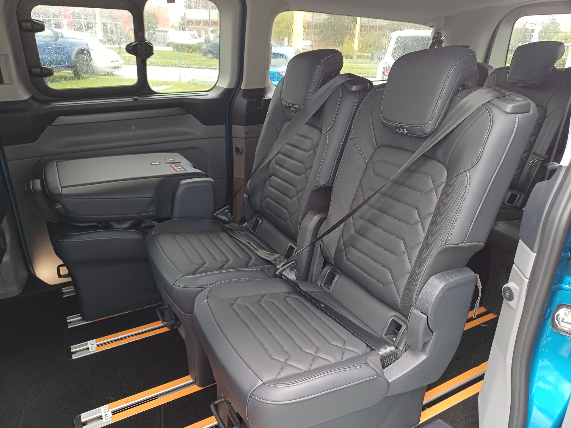 Asistenčná služba Ford Euroservice 2 roky zdarma po celej Európe , Originálna továrenská záruka na vysokonapäťový akumulátor 8 rokov / 160 000 km , Predĺžená továrenská záruka Ford Protect 5 rokov / 150 000 km , 3x USB vzadu , Bočné posuvné dvere na pravej a ľavej strane, [Dostupné aj v sadách zadných sedadiel , Servodovieranie bočných posuvných dverí , Trojzónová automatická klimatizácia vpredu + vzadu , Veľká stredová konzola prístrojovej dosky s úložným priestorom , Kobercové rohože vpredu , 4 x úchytné oko v priestore pre cestujúcich , Sada predných sedadiel 23 - 2-miestna, tmavé vinylové Sensico poťahy, AGR certifikát pre zdravý chrbát-vyhrievané sedadlá vodiča a spolujazdca s lakťovými opierkami po stranách, 4-smerovou bedrovou opierkou, elektricky nastaviteľné v 8 smeroch, manuálne nastaviteľná dĺžka sedákov , Dvojité centrálne zamykanie s diaľkovým ovládaním , Sada Assist 6: 360 parkovacia kamera, navigačný systém, inteligentný adaptívny tempomat s funkciou Stop&Go a udržiavaním v strede jazdného pruhu, Pre-Collision Assist 2.2 s asistentom vyhýbacieho manévra, BLIS - asistent mŕtveho uhla fungujúci aj s prívesom, CTA (Cross Traffic Alert - pri cúvaní upozorní na vozidlá prichádzajúce zboku), asistent zabrzdenia pri cúvaní do prekážky (Reverse Brake Assist) , ICE 3 - Navigácia + systém SYNC 4 + rádio AM/FM/DAB, 13" farebný dotykový displej, 10 reproduktorov , Alarm - obvodový, dvojité centrálne zamykanie , Bezdrôtové nabíjanie smartphonu , Piknikové osvetlenie - LED osvetlenie batožinového priestoru a LED osvetlenie vo výklopných dverách , 7x airbag: predný airbag vodiča a spolujazdca (vypínateľný), centrálny airbag, bočné airbagy vpredu, hlavové záclonové airbagy vpredu a vzadu , Akumulátor AGM H7, 75Ah, 710A , Auto-funkcia zapnutia svetlometov + automatické prepínanie diaľkových svetiel , Bezkľúčové zamykanie KeyFree + štartovanie tlačidlom FordPower (2 x pasívny kľúč s DO) , Bočné okná v 2. rade - výklopné, bočné okná v 3. rade - pevné , Brake Boost - elektrický posilňovač bŕzd , Digitálny prístrojový panel 12" , Elektronická parkovacia brzda s funkciou AUTO HOLD , Elektronický stabilizačný systém ESP - vrátane ABS, asistenta rozjazdu do kopca, multikolíznej brzdy a ďalších systémov na podporu stability, trakcie a brzdenia (EBA, EBD, TCS, ROM, LAC, TVC) , EPAS - elektrický posilňovač riadenia , Integrované tretie brzdové svetlo v zadných dverách nákladného priestoru , Jazdné režimy: Normál, Eco, Klzký povrch, Ťahanie prívesu , Kľučky dverí vo farbe karosérie , Kobercová podlahová krytina v priestore pre cestujúcich , LED osvetlenie interiéru , LED zadné svetlomety , Madlo na B-stĺpiku , Nabíjací kábel 5m (3-fázový, 32A) , Nástupný schodík na pravej aj ľavej strane , Obloženie stien priestoru pre cestujúcich , Obmedzovač rýchlosti na 130 km/h , Osvetlenie nástupných schodíkov v kabíne vodiča , Predné a zadné lapače nečistôt , Presklené zadné výklopné dvere s rozmrazovaním a stieračom , Priehradka pred sedadlom spolujazdca na vrchu prístrojovej dosky , Sada Assist: Pre-Collision Assist s rozpoznávaním chodcov a cyklistov, inteligentný tempomat, asistent navrátenia do jazdného pruhu LKA, rozpoznávanie dopravných značiek, asistent protismeru, kontrola bdelosti vodiča , Sada na opravu pneumatík , Sada zadných sedadiel 19: 6 samostatných sedadiel- koľajnicový systém, tri samostatné sedadlá v druhom rade s úložným priestorom, možnosťou konferenčného usporiadania a stolíkom s držiakmi na poháre na chrbte stredného sedadla, 3 samostatné sedadlá v treťom rade, všetky sklopné a vyberateľné, ISOFIX na bočných sedadlách v 2. a 3. rade , Sedadlá v 2. a 3. rade s funkciou polohovania operadiel , Slnečné clony vpredu so zrkadlom a osvetlením , Systém ovládania jedným pedálom , Tepelné čerpadlo , Uzamykateľná priehradka pred sedadlom spolujazdca pod prístrojovou doskou , Veľkokapacitný akumulátor 400V 64 kWh , Vnútorné spätné zrkadlo - manuálne stmievateľné , Vyhrievané čelné sklo Quickclear , Vysokonapäťové PTC - doplnkové elektrické kúrenie , Výškovo a pozdĺžne nastaviteľný vinylový (Sensico) volant, vinylová (Sensico) radiaca páka , Zadná parkovacia kamera , Zásuvka 12V v priestore vodiča , Vyhrievaný volant , Zásuvka 230V/400W, [Len s jednosedadlom spolujazdca] , 19" disky kolies z ľahkej zliatiny Pearl Grey, pneumatiky 235/50 ,