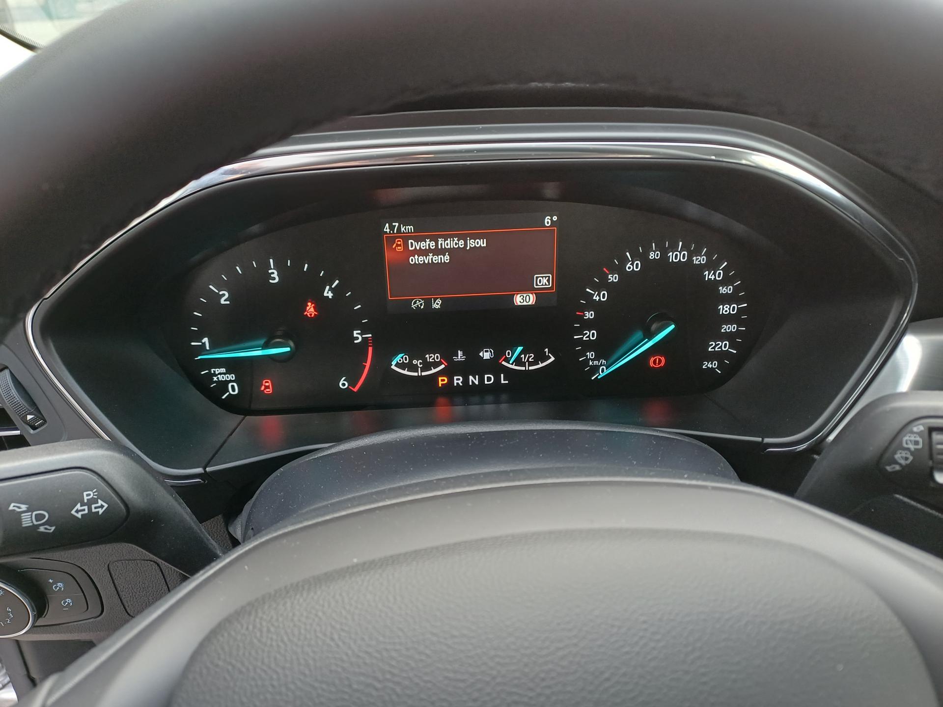 Asistenčná služba Ford Euroservice 2 roky zdarma po celej Európe , Originálna továrenská záruka FORD Protect 5 rokov / 150 000 km , 16" disky z ľahkej zliatiny - pneumatiky 205/60 , 6 x airbag : predné a bočné airbagy vodiča a spolujazdca, hlavové airbagy vpredu a vzadu, predný airbag spolujazdca - vypínateľný , Automatická 2-zónová klimatizácia , Elektronická parkovacia brzda s funkciou Autohold , Elektronický stabilizačný systém ESC, automatická aktivácia bŕzd po náraze, asistent rozjazdu do kopca HHC, bezpečnostný brzdový asistent EBA, Protiblokovací systém ABS , FULL LED predné svetlomety s automatickým zapnutím, integrované LED hmlové svetlomety s funkciou prisvietenia do zákruty , Integrovaný navigačný systém s mapami pre Európu, DAB rádio a systém SYNC 4 s 13,2" dotykovým displejom, hlasové ovládanie, 6 reproduktorov, ovládanie audia na volante, 2 vstupy pre USB, Bluetooth, bezdrôtové Android auto / Apple CarPlay , LED zadné svetlomety , Manuálne nastaviteľné sedadlo vodiča a spolujazdca s bedrovou opierkou, nastaviteľné v 8 smeroch , Minirezerva 16", pneumatiky , Multikolízna brzda - po kolízii dobrzdí vozidlo a zabráni multikolízii , Palubný počítač s 4,2" farebným displejom , Pre-Collision Assist - znižuje riziko nehody s chodcom, cyklistom (do 80 km/h) alebo iným vozidlom (do 130 km/h), autonómne núdzové brzdenie , Predpríprava pre uchytenie detskej sedačky ISOFIX - krajné zadné sedadlá , Prepínateľné jazdné režimy (Normál, Sport, Eco, Trail, Klzký povrch ) , Signalizácia nezapnutého bezpečnostného pásu 1. a 2. radu sedadiel , Šedé čalúnenie stropu , Vnútorné LED osvetlenie , Zadné sedadlá delené v pomere 60/40, sklápateľné , , Automatické stmievanie vnútorného spätného zrkadla + dažďový senzor, Centrálne zamykanie s diaľkovým ovládaním v kľúči - sklopný kľúč 2ks, LED hmlové svetlomety, LED zadné svetlá, My key - systém nastavenia vybraných funkcií pre jeden z klúčov s diaľkovým ovládaním pre zvýšenú bezpečnos vodiča začiatočníka, Signalizácia nezapnutého bezpečnostného pásu na všetkých sedadlách, Uzáver palivovej nádrže EasyFuel zabraňujúci natankovaniu nesprávneho paliva, Volant potiahnutý kožou