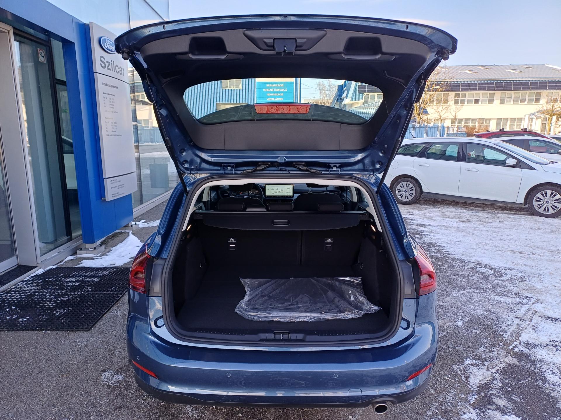 Asistenčná služba Ford Euroservice 2 roky zdarma po celej Európe , Originálna továrenská záruka FORD Protect 5 rokov / 150 000 km , 12V zásuvka v batožinovom priestore , 3 - ramenný multifunkčný koženný volant (materiál Sensico) , Automatická 2-zónová klimatizácia , Automatické stmievanie vnútorného spätného zrkadla + dažďový senzor , Bezkľúčové štartovanie pomocou tlačidla FordPower , Elektronická parkovacia brzda s funkciou Autohold , Elektronický stabilizačný systém ESC, automatická aktivácia bŕzd po náraze, asistent rozjazdu do kopca HHC, bezpečnostný brzdový asistent EBA, Protiblokovací systém ABS , FULL LED predné svetlomety s automatickým zapnutím, integrované LED hmlové svetlomety s funkciou prisvietenia do zákruty , Integrovaný navigačný systém s mapami pre Európu, DAB rádio a systém SYNC 4 s 13,2" dotykovým displejom, hlasové ovládanie, 6 reproduktorov, ovládanie audia na volante, 2 vstupy pre USB, Bluetooth, bezdrôtové Android auto / Apple CarPlay , LDW - varovanie pred neúmyselným opustením jazdného pruhu, LKA - systém pre automatické navrátenie do jazdného pruhu , LED zadné svetlomety , Manuálne nastaviteľné sedadlo vodiča a spolujazdca s bedrovou opierkou, nastaviteľné v 8 smeroch , Minirezerva 16", pneumatiky , Multikolízna brzda - po kolízii dobrzdí vozidlo a zabráni multikolízii , Palubný počítač s 4,2" farebným displejom , Pre-Collision Assist - znižuje riziko nehody s chodcom, cyklistom (do 80 km/h) alebo iným vozidlom (do 130 km/h), autonómne núdzové brzdenie , Prepínateľné jazdné režimy (Normál, Sport, Eco, Trail, Klzký povrch ) , Rolovací kryt batožinového priestoru , Signalizácia nezapnutého bezpečnostného pásu 1. a 2. radu sedadiel , Šedé čalúnenie stropu , Uzáver palivovej nádrže "EasyFuel" zabraňujúci natankovaniu nesprávneho paliva , Vnútorné LED osvetlenie , Zadné sedadlá delené v pomere 60/40, sklápateľné , Metalický lak Blue Metallic , 16" disky z ľahkej zliatiny - pneumatiky 205/60 .