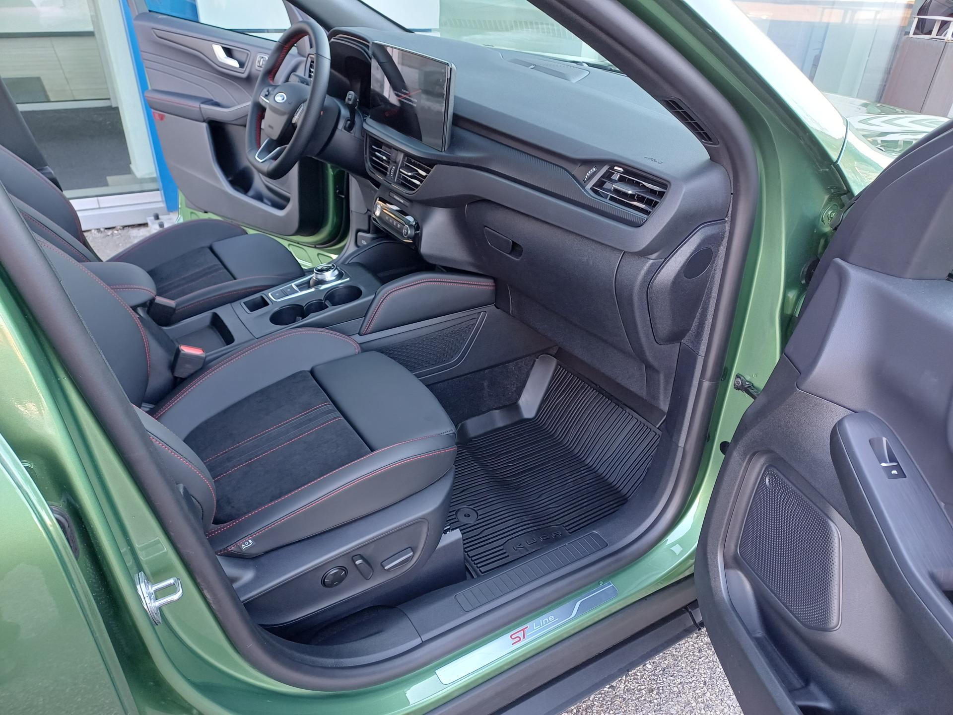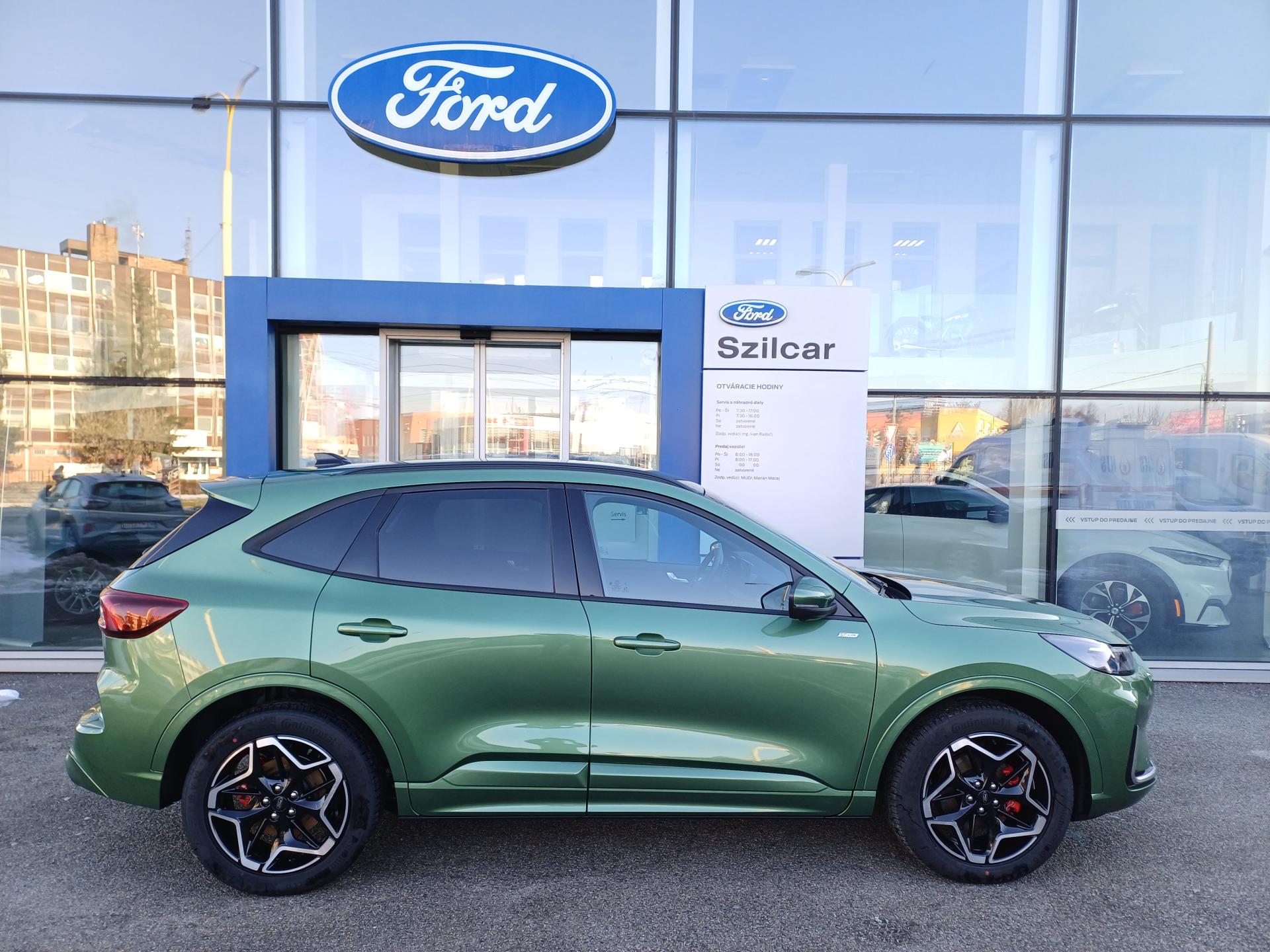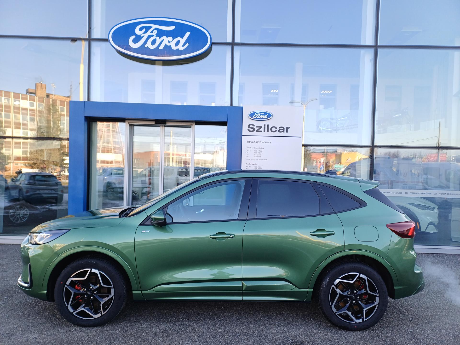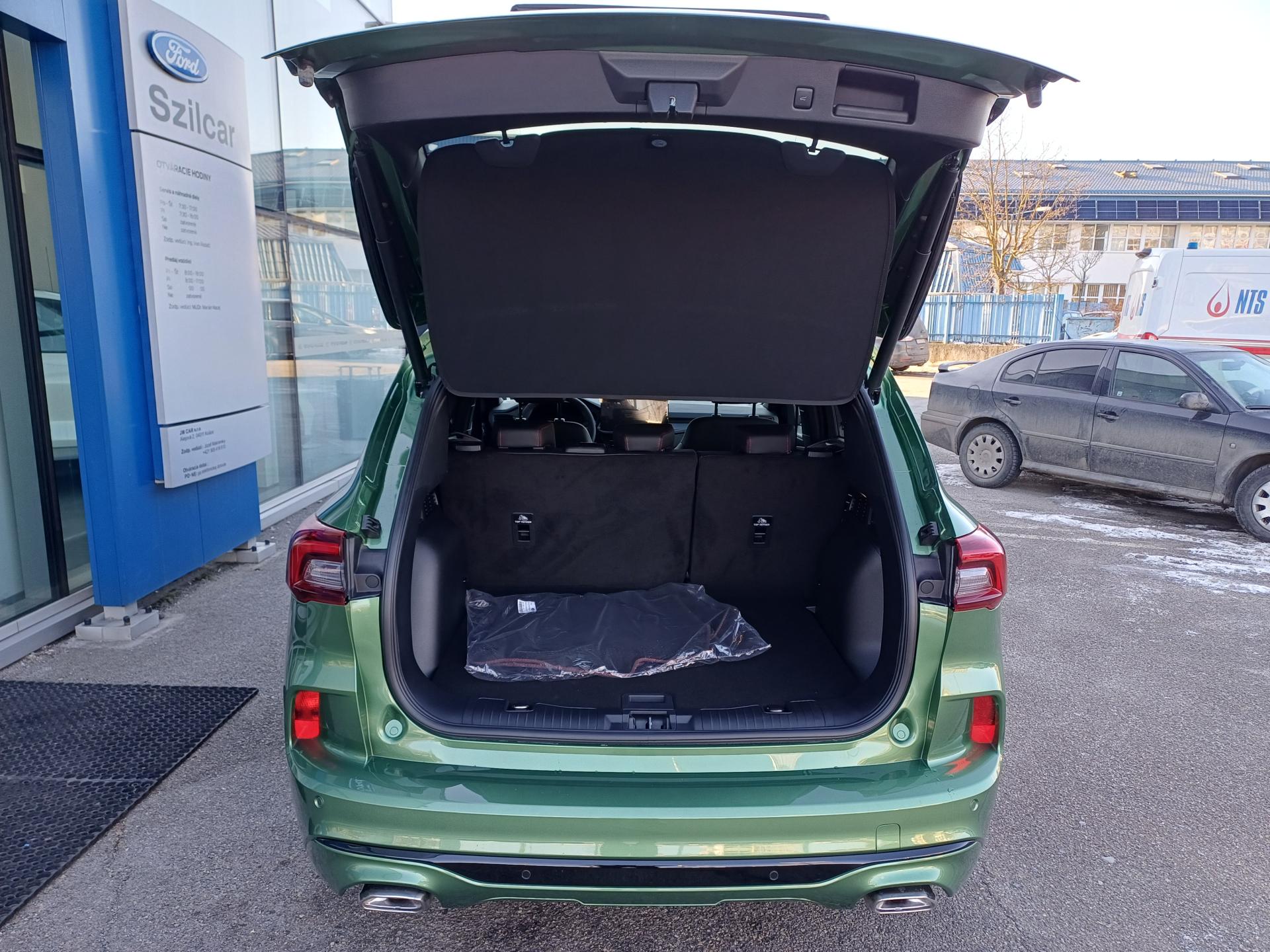 Asistenčná služba Ford Euroservice 2 roky zdarma po celej Európe , Továrenská záruka na komponenty vysokonapäťového systému 5 rokov / 100 000 km , Továrenská predĺžená záruka FORD Protect 5 rokov / 150 000 km , Továrenská záruka na vysokonapäťový akumulátor 8 rokov / 160 000 km , Elektronický stabilizačný systém ESC + automatické natlakovanie brzdového systému v nebezpečných, situáciách EBP, automatická aktivácia bŕzd po náraze, asistent rozjazdu do kopca HLA, núdzový brzdový asistent EBA, protiblokovací systém ABS , Sada ASSIST- Adaptívny inteligentný tempomat (prediktívny podľa dát navigácie; pre automatickú prevodovku aj s funkciami Stop&Go a Lane Centering)- Pokročilý systém rozpoznania dopravných značiek (sníma okrem rýchlosti aj iné dopravné obmedzenia)- 360 parkovacia kamera- Pokročilý Pre-Collision Assist (systém autonómneho núdzového brzdenia, asistent pri prejazde križovatkou, Distance Alert - systém sledovania odstupu)- Ochrana hrán dverí , 12V zásuvka v batožinovom priestore , 3-ramenný kožený volant , Akustické sklá predných dverí , Audiosystém Bang & Olufsen s 10 reproduktormi vrátane subwooferu , Automatické stmievanie vnútorného spätného zrkadla , Balík ST-Line X - 18" hliníkové disky, športový predný a zadný nárazník, integrované krídla na prednom nárazníku s hliníkovou povrchovou úpravou, plakety ST-Line na predných blatníkoch, čierne strešné lyžiny, čierne čalúnenie stropu, červené brzdové strmene, veľký zadný spojler, hliníkové pedále, lišty prahov dverí ST-Line, športový volant s červeným prešívaním , Bezdrôtové pripojenie pre Apple CarPlay a Android Auto, Bluetooth, USB A + USB C vpredu, 2x USB C vzadu, ovládanie na volante , Bezpečnostné kladivko na rozbitie okna v prípade havárie , Digitálny prístrojový panel s 13" farebným displejom , Dve koncovky výfuku s hliníkovou povrchovou úpravou , Elektrické otváranie 5. dverí s virtuálnym pedálom , Elektricky nastaviteľné, vyhrievané a sklopné spätné zrkadlá, s integrovaným osvetlením okolia , Elektronická parkovacia brzda s funkciou Autohold , Evasive Steering Assist - asistent vyhýbacieho manévra , Adaptívne MATRIX FULL LED svetlomety s prediktívnym svietením, stredový LED svetelný pás nad maskou chladiča , Integrovaný navigačný systém s mapami pre Európu - AM/FM/DAB rádio a systém SYNC 4 s 13" dotykovým displejom a hlasovým ovládaním , LDW - varovanie pred neúmyselným opustením jazdného pruhu , LED zadné svetlá , Pre-Collision Assist - znižuje riziko nehody s chodcom, cyklistom (do 80 km/h) alebo iným vozidlom (do 130 km/h), autonómne núdzové brzdenie , Predpríprava pre uchytenie detskej sedačky ISOFIX - krajné zadné sedadlá , Prepínateľné jazdné režimy : Normál, Sport, Eco, Klzký povrch, Nespevnená cesta , Reverse Brake Assist - zabrzdí vozidlo pri cúvaní do prekážky , Minirezerva 17"- pneumatika 165/70 R17, Ergonomické AGR certifikované sedadlá vodiča a spolujazdca, elektricky nastaviteľné v 8 smeroch (sedadlo vodiča s pamäťovou funkciou), elektricky nastaviteľné bedrové opierky v 4 smeroch, manuálne nastavenie hlavových opierok v 4 smeroch, manuálne predĺženie podsedákov , Signalizácia nezapnutého bezpečnostného pásu 1. a 2. rady sedadiel , Strešné lyžiny - čierne , Systém BLIS - optická signalizácia predchádzajúceho vozidla v mŕtvom uhle vonkajších spätných zrkadiel - funguje aj s prívesom, obsahuje aj BSA - asistent zmeny jazdného pruhu , Systém Cross Traffic Alert (detekcia prechádzajúcich vozidiel pri výjazde z parkovacieho miesta) , Uzáver palivovej nádrže "EasyFuel" zabraňujúci natankovaniu nesprávneho paliva , Zadná lakťová opierka s držiakom na poháre , Zadné sedadlá delené v pomere 60/40, pozdĺžne posúvateľné , Zatmavené zadné sklá (od B-stĺpika) , 19" disky z ľahkej zliatiny - čierne, s brúsenou povrchovou úpravou, pneumatiky 225/55 ,
