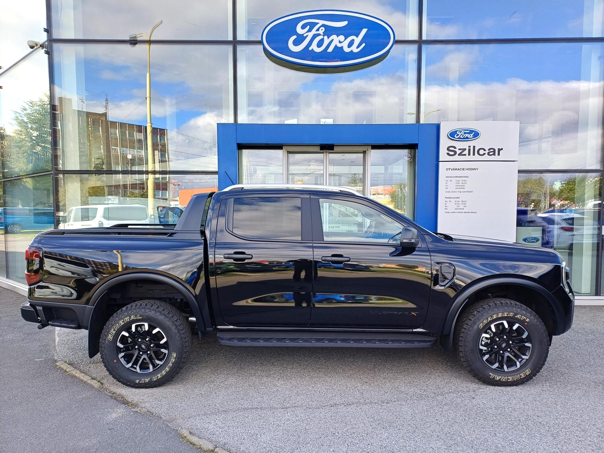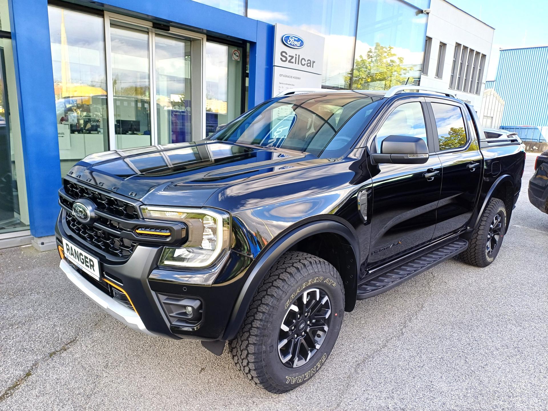 Asistenčná služba Ford Euroservice 2 roky zdarma po celej Európe , Predĺžená továrenská záruka Ford Protect 5 rokov / 150 000 km , Dodatočná ochrana podvozka voskom , Sada Offroad - mechanická uzávierka diferenciálu, ochrana motora a prevodovky , Schodíky integrované na vonkajšej bočnej strane nákladného priestoru , Bočný ochranný rám podbehov s nášľapným schodíkom , Navigácia so systémom SYNC 4 + rádio AM/FM/DAB, 6 reproduktorov, 12" farebný dotykový displej , 360 zónové LED osvetlenie okolo vozidla (4 zóny) , Aerodynamický ochranný rám za kabínou s lyžinami + strešné lyžiny , Akustické čelné sklo , Asistenčné systémy:- adaptívny tempomat- Pre-Collision Assist s autonómnym núdzovým brzdením (rozpoznáva vozidlá, chodcov a cyklistov)- rozpoznávanie dopravných značiek- LKA - systém pre automatické navrátenie do jazdného pruhu- ESA - asistent vyhýbacieho manévra- Asistent odbočovania vľavo- svetelný senzor + automatické prepínanie diaľkových svetiel , Bezkľúčové zamykanie KeyFree + štartovanie tlačidlom FordPower (2 x pasívny kľúč s DO) , Brake Boost - elektronický posilňovač bŕzd , Digitálny prístrojový panel 8" , Držiak na pohár výsuvný z palubnej dosky , e-4WD - pripojiteľný pohon všetkých kolies volený manuálne (4L/4H), možnosť voľby stáleho pohonu všetkých kolies (4A) , Elektricky vyhrievané zadné okno , Elektronická parkovacia brzda , Elektronický stabilizačný systém ESP- vrátane ABS, asistenta rozjazdu do kopca a zjazdu z kopca, multikolíznej brzdy, stabilizácie prívesu a ďalších systémov na podporu stability, trakcie a brzdenia (EBA, EBB, TCS, ROM, LAC) , Elektronicky uzamykateľné výklopné veko nákladného priestoru s komfortným otváraním , Heavy Duty ťažné oko vpredu 2x , Heavy-Duty EPAS - elektronický posilňovač riadenia pre náročné off-road podmienky , Kobercová podlaha , Kobercové rohože vpredu , Kotúčové brzdy vpredu a vzadu, (sady Technology) , Kožené sedadlá - sedadlo vodiča elektricky nastaviteľné 8-smermi , Lapače nečistôt - predné aj zadné , LED zadné svetlomety , Monochromatické vnútorné spätné zrkadlo , Obloženie stien a podlahy nákladného priestoru - plastová vaňa , Off-Road odpruženie Bilstein s externými zásobníkmi, svetlá výška + 20mm , Osvetlenie nákladného priestoru , Palivová nádrž 80l s ochranným krytom , Plastová ochrana okrajov nákladného priestoru s integrovanými otvormi na upevnenie príslušenstva , Plastová výplň dverí , Predná lakťová opierka s integrovanou odkladacou schránkou , Predpríprava pre uchytenie detskej sedačky ISOFIX - krajné zadné sedadlá + detské poistky zámku zadných dverí , Priehradka pred spolujazdcom uzamykateľná , Rozšírené lemy blatníkov kolies , Sada kolies 22 : 17" disky kolies z ľahkých zliatin čierne, A/T pneumatiky 265/70, zliatinové rezervné koleso , Sedadlo spolujazdca nastaviteľné 4-smermi , Signalizácia nezapnutého bezpečnostného pásu pre vodiča, spolujazdca a zadné sedadlá , Terrain management system - otočný volič na prepínanie medzi jazdnými režimami (Normal, Eco, Ťahanie, Klzký povrch, Piesok, Blato, Skaly) , Tmavé čalúnenie stropu , Trail Control - kontrolované zjazdy a výjazdy v teréne pod 32 km/h , Trail Turn Assist - znižuje priemer otáčania v teréne až o 25% , Ukazovateľ stavu čistiacej kvapaliny , Úložný priestor na okuliare na strope , USB pre 2. rad sedadiel , Uzáver palivovej nádrže "EasyFuel" zabraňujúci natankovaniu nesprávneho paliva , Vinylový poťah palubnej dosky , Vinylový športový volant obšívaný kontrastnou niťou , Výškovo a pozdĺžne nastaviteľný volant , Zadné 3-sedadlo s hlavovými opierkami a sklopnou stredovou lakťovou opierkou s držiakmi na nápoje, sklopné operadlo, výklopný sedák, úložné priestory v podlahe pod sedadlom , Zadný nárazník s integrovaným schodíkom vzadu , Zadné okná s funkciou impulzného otvárania , Sada Technology 52 - inteligentný adaptívny tempomat, BLIS 2.0 s podporou prívesu + CTA, ťažné zariadenie, kontrola bdelosti vodiča , Metalický lak ,
