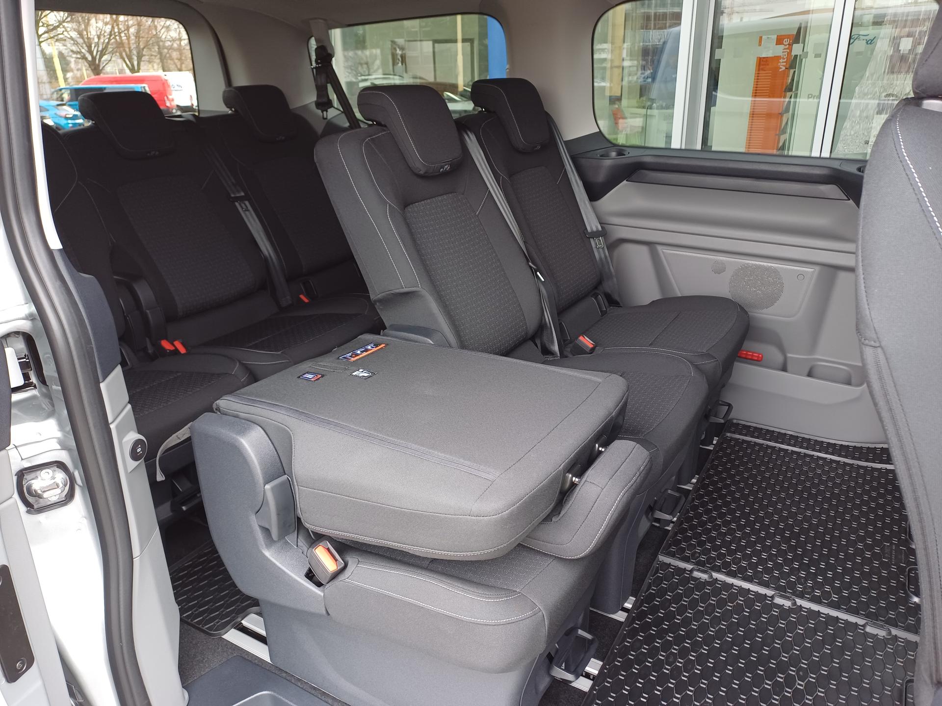 Predĺžená továrenská záruka Ford Protect 5 rokov / 200 000 km , Rezerva oceľová (215/65 R16) + náradie , Palivová nádrž - objem 70 litrov , 16" disky kolies z ľahkej zliatiny, pneumatiky 215/65 , 2 x úchytné oko v priestore pre cestujúcich , Bočné okná v 2. a 3. rade - pevné , Bočné posuvné dvere na pravej strane , Čiastočne lakovaný predný a zadný nárazník , Digitálny prístrojový panel 12" , Elektronická parkovacia brzda s funkciou AUTO HOLD , Elektronický stabilizačný systém ESP- vrátane ABS, asistenta rozjazdu do kopca, multikolíznej brzdy a ďalších systémov na podporu stability, trakcie a brzdenia (EBA, EBD, TCS, ROM, LAC, TVC) , EPAS - elektrický posilňovač riadenia , ICE 2 - systém SYNC 4 + rádio AM/FM/DAB, 13" farebný dotykový displej, 10 reproduktorov , Integrované tretie brzdové svetlo v zadných dverách nákladného priestoru , Kobercová podlahová krytina v priestore pre cestujúcich , LED osvetlenie interiéru , Malá stredová konzola medzi prednými sedadlami , Nelakované kľučky dverí , Osvetlenie nástupných schodíkov v kabíne vodiča , Predné a zadné lapače nečistôt , Presklené zadné výklopné dvere s rozmrazovaním a stieračom , Priehradka pred sedadlom spolujazdca na vrchu prístrojovej dosky , Sada Assist: Pre-Collision Assist s rozpoznávaním chodcov a cyklistov, inteligentný tempomat, asistent navrátenia do jazdného pruhu LKA, rozpoznávanie dopravných značiek, asistent protismeru, kontrola bdelosti vodiča , Sada zadných sedadiel 5:- koľajnicový systém, tri samostatné sedadlá v druhej rade s možnosťou konferenčného usporiadania, 2+1 sedadlo v tretej rade, všetky sklopné a vyberateľné, ISOFIX na bočných sedadlách v 2. a 3. rade , Sedadlá v 2. a 3. rade s funkciou polohovania operadiel , Slnečné clony vpredu so zrkadlom a osvetlením , Systém redukcie emisií výfukových plynov využívajúci vstrekovanie aditíva AdBlue + nádrž pre AdBlue 20l , Tónované sklá , Úložný priestor na okuliare na strane vodiča , Uzamykateľná priehradka pred sedadlom spolujazdca pod prístrojovou doskou , Vnútorné spätné zrkadlo - manuálne stmievateľné , Výkonnejší alternátor (240 A) , Výškovo a pozdĺžne nastaviteľný vinylový (Sensico) volant, vinylová (Sensico) radiaca páka , Zásuvka 12V v priestore vodiča . , Bezkľúčové zamykanie KeyFree + štartovanie tlačidlom FordPower (2 x pasívny kľúč s DO), Kobercová podlahová krytina v nákladovom priestore, LED osvetlenie interiéru, Peľový filter, Uzáver palivovej nádrže EasyFuel zabraňujúci natankovaniu nesprávneho paliva, Zásuvka 12V v kabíne vodiča