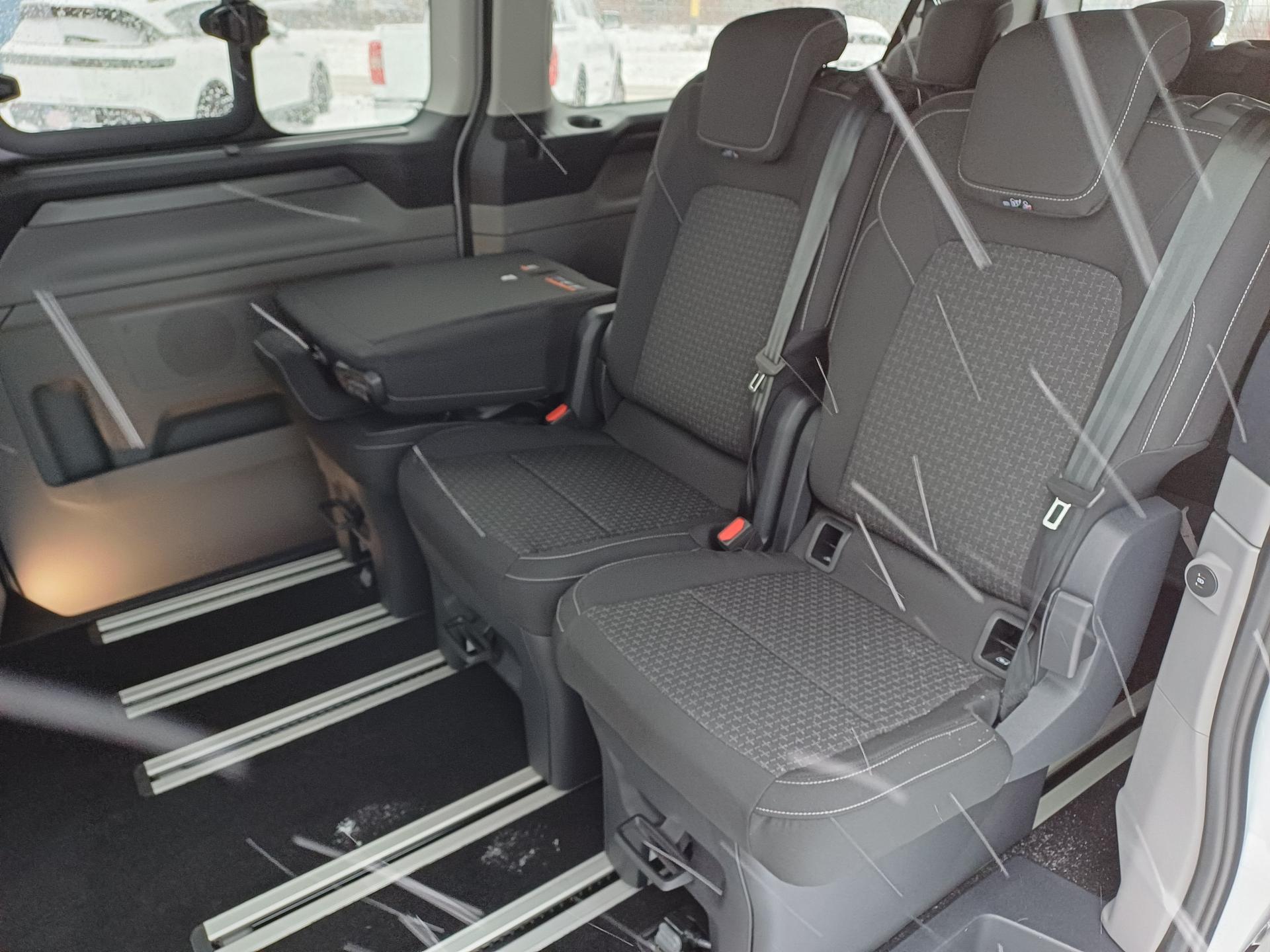 Asistenčná služba Ford Euroservice 2 roky zdarma po celej Európe , Predĺžená továrenská záruka Ford Protect 5 rokov / 200 000 km , 3x USB a 12V zásuvka vzadu , 4 x úchytné oko v priestore pre cestujúcich , Bezpečnostné 3-bodové pásy + zvuková signalizácia nezapnutého bezpečnostného pásu na všetkých sedadlách , Bočné posuvné dvere na pravej a ľavej strane , Bočné okná v 2. rade - výklopné, bočné okná v 3. rade - pevné , Čiastočne lakovaný predný a zadný nárazník , Digitálny prístrojový panel 12" , Elektronická parkovacia brzda s funkciou AUTO HOLD , Elektronický stabilizačný systém ESP- vrátane ABS, asistenta rozjazdu do kopca, multikolíznej brzdy a ďalších systémov na podporu stability, trakcie a brzdenia (EBA, EBD, TCS, ROM, LAC, TVC) , EPAS - elektrický posilňovač riadenia , ICE 2 - systém SYNC 4 + rádio AM/FM/DAB, 13" farebný dotykový displej, 10 reproduktorov , Integrované tretie brzdové svetlo v zadných dverách nákladného priestoru , Kobercová podlahová krytina v priestore pre cestujúcich , LED osvetlenie interiéru , Madlo na B-stĺpiku , Veľká stredová konzola prístrojovej dosky s úložným priestorom , Dvojzónová automatická klimatizácia vpredu, obsahuje aj PTC - doplnkové elektrické kúrenie (zrýchlený ohrev interiéru v prednej časti) , Nelakované kľučky dverí , Obloženie stien priestoru pre cestujúcich , Osvetlenie nástupných schodíkov v kabíne vodiča , Palivová nádrž - objem 70 litrov , Predné a zadné lapače nečistôt , Presklené zadné výklopné dvere s rozmrazovaním a stieračom , Priehradka pred sedadlom spolujazdca na vrchu prístrojovej dosky , Rezerva oceľová (215/65 R16) + náradie , Sada Assist: Pre-Collision Assist s rozpoznávaním chodcov a cyklistov, inteligentný tempomat, asistent navrátenia do jazdného pruhu LKA, rozpoznávanie dopravných značiek, asistent protismeru, kontrola bdelosti vodiča , Sada predných sedadiel 7 - 2-miestna, tmavé látkové poťahy Black Onyx-vyhrievané sedadlá vodiča (nastaviteľné v 4 smeroch) a spolujazdca (nastaviteľné v 2 smeroch) s lakťovou opierkou, bedrová opierka vodiča , Sada zadných sedadiel 5:- koľajnicový systém, tri samostatné sedadlá v druhej rade s možnosťou konferenčného usporiadania, 2+1 sedadlo v tretej rade, všetky sklopné a vyberateľné, ISOFIX na bočných sedadlách v 2. a 3. rade , Sedadlá v 2. a 3. rade s funkciou polohovania operadiel , Slnečné clony vpredu so zrkadlom a osvetlením , Systém redukcie emisií výfukových plynov využívajúci vstrekovanie aditíva AdBlue + nádrž pre AdBlue 20l , Tmavé sklá okien (zadné okná od B-stĺpika) , Uzamykateľná priehradka pred sedadlom spolujazdca pod prístrojovou doskou , Vnútorné spätné zrkadlo - manuálne stmievateľné , Výkonnejší alternátor (240 A) , Výškovo a pozdĺžne nastaviteľný vinylový (Sensico) volant, vinylová (Sensico) radiaca páka , Zásuvka 12V v priestore vodiča , Zásuvka 230V/400W , 16" disky kolies z ľahkej zliatiny, pneumatiky 215/65 ,, Kobercová podlahová krytina v nákladovom priestore, Uzáver palivovej nádrže EasyFuel zabraňujúci natankovaniu nesprávneho paliva