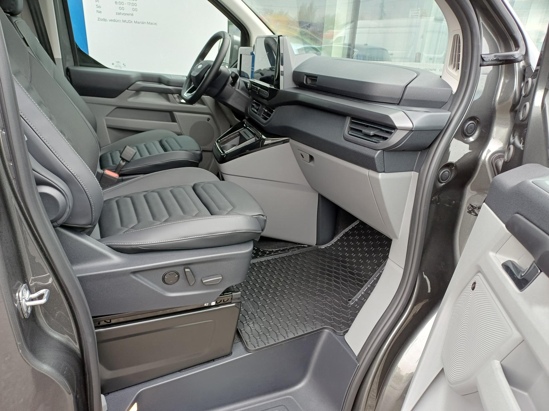 Asistenčná služba Ford Euroservice 2 roky zdarma po celej Európe , Predĺžená továrenská záruka Ford Protect 5 rokov / 200 000 km , 3x USB vzadu , Elektricky ovládané pravé a ľavé posuvné dvere so servodovieraním a virtuálnym pedálom , Servodovieranie bočných posuvných dverí , Trojzónová automatická klimatizácia vpredu + vzadu, obsahuje aj PTC - doplnkové elektrické kúrenie (zrýchlený ohrev interiéru v prednej časti) , Veľká stredová konzola prístrojovej dosky s úložným priestorom , Kobercové rohože vpredu , 4 x úchytné oko v priestore pre cestujúcich, Sada predných sedadiel 23 - 2-miestna, tmavé vinylové Sensico poťahy, AGR certifikát pre zdravý chrbát-vyhrievané sedadlá vodiča a spolujazdca s lakťovými opierkami po stranách, 4-smerovou bedrovou opierkou, elektricky nastaviteľné v 8 smeroch, manuálne nastaviteľná dĺžka sedákov , Bočné okná v 2. rade - výklopné, bočné okná v 3. rade - pevné , Elektricky sklopné/výklopné ťažné zariadenie so systémom stabilizácie prívesu , Palivová nádrž - objem 70 litrov , Akumulátor AGM H8, 95Ah, 850A , Zásuvka 230V/400W , Bang & Olufsen Sound System - prémiová audiosústava obsahuje 15 reproduktorov vrátane subwoofera , Dvojité centrálne zamykanie s diaľkovým ovládaním , 360 parkovacia kamera, navigačný systém, inteligentný adaptívny tempomat (AT aj s funkciou Stop&Go a udržiavaním v strede jazdného pruhu), Pre-Collision Assist 2.2 s asistentom vyhýbacieho manévra, BLIS - asistent mŕtveho uhla fungujúci aj s prívesom, CTA (Cross Traffic Alert - pri cúvaní upozorní na vozidlá prichádzajúce zboku), asistent zabrzdenia pri cúvaní do prekážky (Reverse Brake Assist) , Navigácia + systém SYNC 4 + rádio AM/FM/DAB, 13" farebný dotykový displej , Brake Boost - elektrický posilňovač bŕzd , Digitálny prístrojový panel 12" , Elektronická parkovacia brzda s funkciou AUTO HOLD , Elektronický stabilizačný systém ESP - vrátane ABS, asistenta rozjazdu do kopca, multikolíznej brzdy a ďalších systémov na podporu stability, trakcie a brzdenia (EBA, EBD, TCS, ROM, LAC, TVC) , EPAS - elektrický posilňovač riadenia , Integrované tretie brzdové svetlo v zadných dverách nákladného priestoru , Jazdné režimy: Normál, Eco, Sport, Klzký povrch, Ťahanie prívesu (AT), Nespevnená cesta (AWD a mLSD) , Kľučky dverí vo farbe karosérie , Kobercová podlahová krytina v priestore pre cestujúcich , Lakovaný predný a zadný nárazník , LED zadné svetlomety , Madlo na B-stĺpiku , Nástupný schodík na pravej aj ľavej strane , Obloženie stien priestoru pre cestujúcich , Osvetlenie nástupných schodíkov v kabíne vodiča , Predné a zadné lapače nečistôt , Presklené zadné výklopné dvere s rozmrazovaním a stieračom , Priehradka pred sedadlom spolujazdca na vrchu prístrojovej dosky , Sada Assist: Pre-Collision Assist s rozpoznávaním chodcov a cyklistov, inteligentný tempomat, asistent navrátenia do jazdného pruhu LKA, rozpoznávanie dopravných značiek, asistent protismeru, kontrola bdelosti vodiča , Sada na opravu pneumatík , Sedadlá v 2. a 3. rade s funkciou polohovania operadiel , Slnečné clony vpredu so zrkadlom a osvetlením , Systém redukcie emisií výfukových plynov využívajúci vstrekovanie aditíva AdBlue + nádrž pre AdBlue 20l , Tmavé sklá okien (zadné okná od B-stĺpika) , USB a 12V zásuvka vzadu , Uzamykateľná priehradka pred sedadlom spolujazdca pod prístrojovou doskou , Vnútorné spätné zrkadlo - manuálne stmievateľné , Výkonnejší alternátor (240 A) , Výškovo a pozdĺžne nastaviteľný vinylový (Sensico) volant, vinylová (Sensico) radiaca páka , Zásuvka 12V v priestore vodiča , 19" disky kolies z ľahkej zliatiny Pearl Grey, pneumatiky 235/50 , , Bezpečnostné 3-bodové pásy na všetkých sedadlách + signalizácia nezapnutého bezpečnostného pásu pre, Kobercová podlahová krytina v nákladovom priestore, Uzáver palivovej nádrže EasyFuel zabraňujúci natankovaniu nesprávneho paliva, Zásuvka 12V v kabíne vodiča