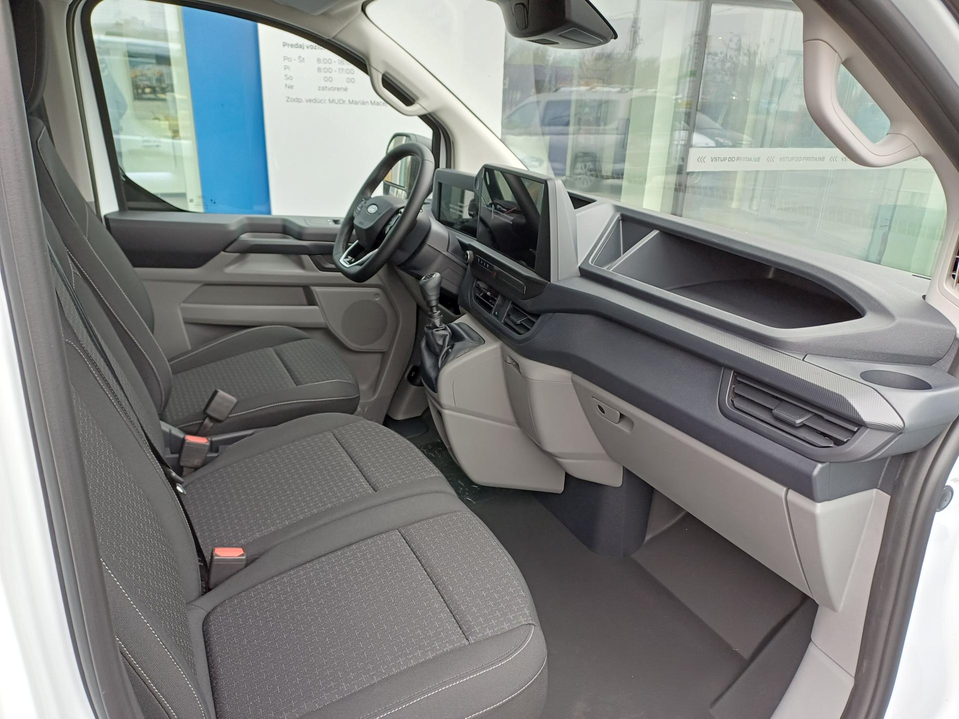 Predĺžená továrenská záruka Ford Protect 5 rokov / 200 000 km , 16" oceľové disky kolies, pneumatiky 215/65 , 8 x kotviace oko v nákladovom priestore, [Séria L2] , Asistenčná služba Ford Euroservice 2 roky zdarma po celej Európe , Digitálny prístrojový panel 12" , Elektronická parkovacia brzda s funkciou AUTO HOLD , Elektronický stabilizačný systém ESP - vrátane ABS, asistenta rozjazdu do kopca, multikolíznej brzdy a ďalších systémov na podporu stability, trakcie a brzdenia (EBA, EBD, TCS, ROM, LAC, TVC) , Gumená podlaha v kabíne , Hybridné predné svetlomety (LED stretávací / halogénový diaľkový) s denným svietením , ICE 2 - systém SYNC 4 + rádio AM/FM/DAB, 13" farebný dotykový displej, 4 reproduktory , Integrované (celoplošné) kryty kolies , Konfigurácia odomykania dverí 1 : 1 stlačenie: predné dvere; 2 stlačenia: všetky dvere , LED osvetlenie nákladného priestoru , Nepresklené zadné dvojkrídlové dvere s otváraním do 180 stupňov , Sada transport: extra jasné LED osvetlenie, obloženie stien do plnej výšky a odolná plastová krytina v nákladnom priestore , Uzamykateľná priehradka pred sedadlom spolujazdca , Rezerva oceľová (215/65 R16) + náradie , Palivová nádrž - objem 70 litrov , Oceľová deliaca priečka oddeľujúca nákladný priestor , Parkovací asistent so snímačmi vpredu aj vzadu , Predné a zadné lapače nečistôt , Prepínateľné jazdné režimy: Normál, Eco, Klzký povrch, Ťahanie prívesu (pre A8), Nespevnená cesta (pre AWD a mLSD) , Sada Assist: Pre-Collision Assist s rozpoznávaním chodcov a cyklistov, inteligentný tempomat, asistent navrátenia do jazdného pruhu LKA, rozpoznávanie dopravných značiek, asistent protismeru, kontrola bdelosti vodiča , Sada predných sedadiel 11A - sedadlo vodiča nastaviteľné v 4 smeroch, dvojsedadlo spolujazdca, bedrová opierka vodiča, otvor na dlhé predmety, tmavé látkové poťahy , Systém redukcie emisií výfukových plynov využívajúci vstrekovanie aditíva AdBlue + nádrž pre AdBlue 20l, [Séria diesel] , Výškovo a pozdĺžne nastaviteľný volant , , Bezpečnostné 3-bodové pásy na všetkých sedadlách zvuková signalizácia nezapnutého bezpečnostného pásu pre sedadlo vodiča, Bočné posuvné dvere nák. priestoru na pravej strane, EPAS - elektrický posilňovač riadenia s variabilným účinkom, Integrované tretie brzdové svetlo v zadných dverách nákladového priestoru, Predný plastový nárazník - lakovaný vo farbe karosérie, Uzáver palivovej nádrže 'EasyFuel' zabraňujúci natankovaniu nesprávneho paliva, Zadný plastový nárazník - čiastočne lakovaný vo farbe karosérie, Zásuvka 12V v kabíne vodiča